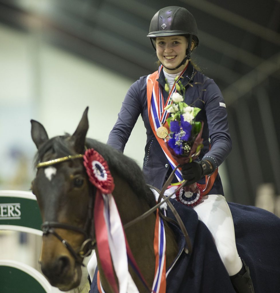 Bildetekst: Anna Stangeland og Viraldo tok gull i INM for juniorer 2014. Foto: hesteguiden.com
