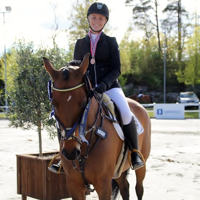 Mest komiske hesteøyeblikk: Jeg og en venninne galopperte med hver vår hest på en lang strekke, og jeg red Capoeira som jeg vet er utrolig skvetten. Vi nærmet oss en stein som hun alltid skvetter av, eller lager «big deal» ut av, og siden jeg galopperte først ville jeg at venninna bak meg skulle se når Capoeira danset forbi den skumle steinen. Jeg så bak på venninna mi hele tiden og var nok ufokusert, så før jeg forventet det bråstoppet hesten og tok en u-sving vekk fra steinen – og der lå jeg i bakken! Det verste var at alle på stallen fikk det med seg, fordi det var en hel haug som stod 100 meter bortenfor, ved ridehallen. Hesten løp rundt på et jorde og hadde det veldig fint, mens jeg, flau og skitten, tuslet bortover i håp om å fange Capoeira igjen…