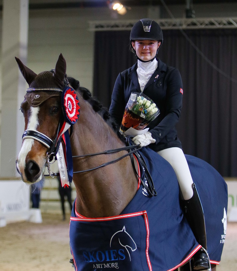 Men først skal hun nyte dagens flotte resultat og herlige seier under Norwegian Horse Festival. – Ja, det var fantastisk å vinne her, og jeg er veldig fornøyd med tanke på hvordan det gikk første dag. Jeg red for mormor – og å vinne var ganske ubeskrivelig!