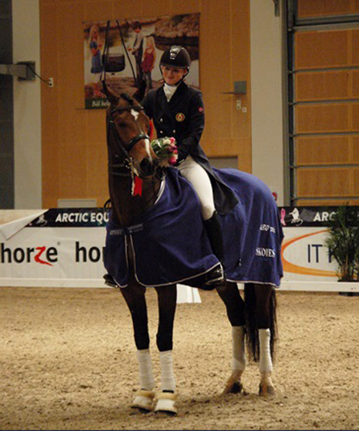 Bildetekst: Caroline Steine Jensen vant Young Rider Kür, sponset av Diploma, på hesten Blue Hors Develino.