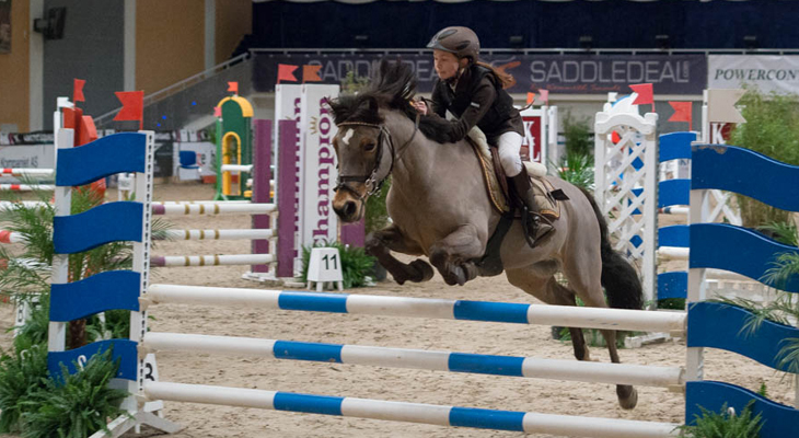 Bildetekst: I dag var de suverent best, Celin Inez Currie/Obelix X. De tok seieren i 0,80 m klassen for ponni kategori 3 presentert av Volvo Penta.