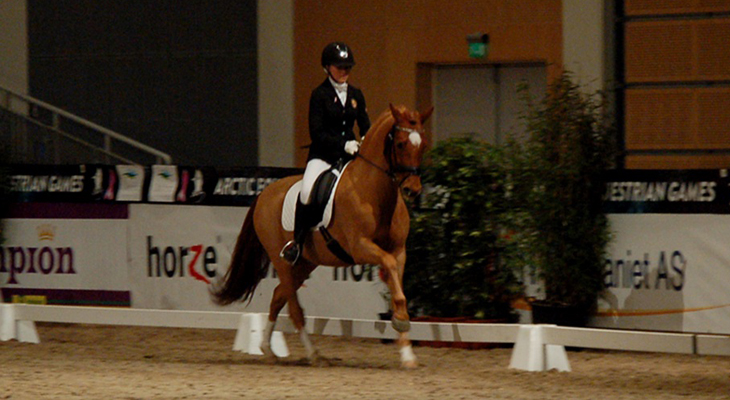 Dressuren er endelig i gang på AEG. Ponniene var først ut, med et internasjonalt startfelt og en del nye, unge lovende ryttere.