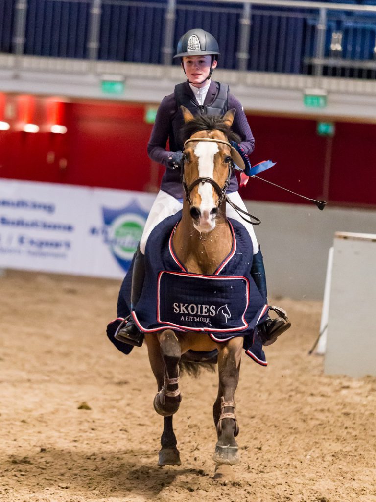 Med drøyt et sekunds margin gikk Rikke til topps i MB-klassen for de største ponniene i dag, en klasse presentert av Borg Bygg. Bak Fredrikstad-rytteren fulgte Rogalands Emilie Kvevik/Bonte Bart og Nora Fredriksen/Parc Cookie (DOR).