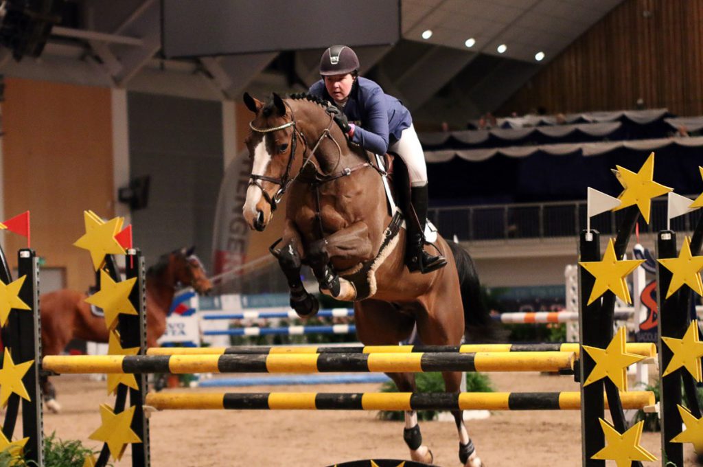 – Han er en praktfull Cabachon-sønn som løser oppgavene i ringen på en flott og overraskende moden måte. Banen i dagens finale var mer enn nok å bite i for en unghest, og jeg og de andre som møttes i femårsfinalen var veldig fornøyde med at banebygger ikke satte opp til omhopping, ler stilrytteren Merethe som nå vender hjem fra AEG for å se til egetprodusert avkom.