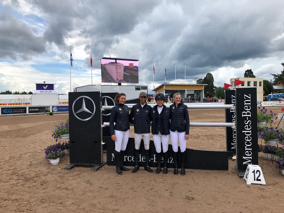Fredrik Seim/ Javko du Flory hadde fått tilliten fra start fra lagleder Mikael Kolind, og entret også arenaen først av alle ekvipasjer, da det norske nasjonslaget hadde startnummer ett. Margrethe Vist Hartmann/ Fighter Dhh var nummer to, Karina Hovland/ Everest startet som nummer tre, og Cecilie Hatteland/ Alex, som for øvrig stod for en strålende individuell andreplass i Grand Prix de Mercedes-Benz 1,60 m på fredag , avsluttet det hele.