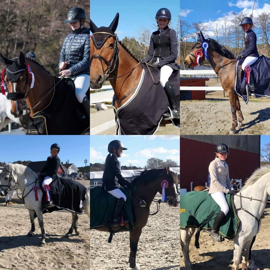 Bildetekst: Årets første utendørs cup-vinnere fra øverst til venstre: Ida Marie Øie – Felleskjøpet Champion Cup (foto: Juliane Kingren), Mia Kjærnli Fossum – Høøks Cup, Emmeline Pedersen – Agria Dyreforsikring Cup kat 2, Rasmus Aasland – OHS Cup kat I, Emilie Øia Helgesen – Top Spec Cup kat 3, Martine Berheim Skår – Top Spec Cup kat 1 og 2.