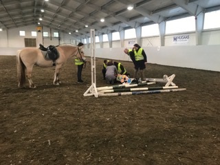 Her fikk deltakerne prøve seg på realistiske øvelser hvor de fikk teste det de hadde lært samt at observatørene fikk komme med tilbakemeldinger. Gruppene rullerte slik at alle fikk prøve. -Med oss hadde vi en fantastisk markør, Maja Bredland Seehuus, som gjorde det hele mer realistisk. Vi hadde selvfølgelig med oss hest også, og det var fjordingen Seira som tok det hele med stor ro. Kurset ble avholdt på Øya Landbruksskole som lånte oss både hest og lokaler.