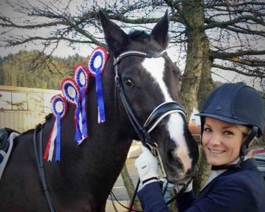 Bildetekst: Mari Hafstad Næsheim og Dantona fikk med seg flere rosetter under helgens stevne ved Haugesund Rideklubb. (Foto: Privat)