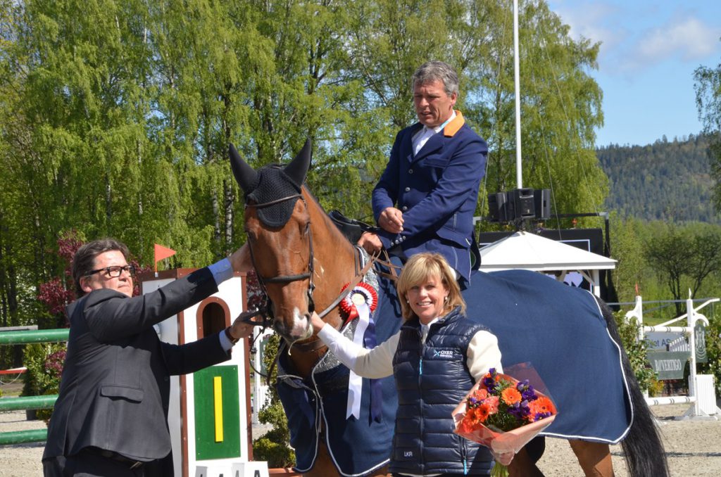 Jeg hadde satset på å kunne gi disse blomstene til en av de norske, og selvfølgelig aller helst til min egen datter, Line, utbrøt klassens alltid like blide sponsor, Ellen Raaholt fra OXER Eiendom, like etter at klassen var avgjort.  – Det var ikke langt unna, for her var jo mange gode norske resultater, men helt i toppen, der endte jo ingen av våre denne gangen. Det er uansett veldig, veldig hyggelig å stå som sponsor for hovedklassen under tradisjonsrike Norway Grand Prix.