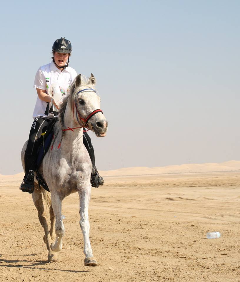 Kine Eiesland Holen red inn til en 47. plass i ”H.H The President of UAE Endurance Cup”, lørdag 15. februar. Distansen på 160 km ble tilbakelagt med en snitthastighet på 15.238 km/t. Dette var Shere Khan og Kines debut i CEI*** 160km.
