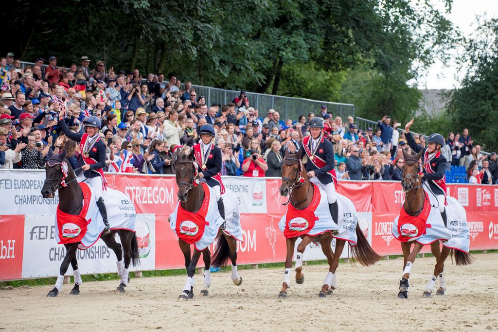 Årets laggull gikk til Storbritannia med totalt 113,90 i straff – etter bare feilfrie runder på sprangbanen denne søndagen ved de tre ekvipasjene som fortsatt var tilbake etter at Oliver Townend/ Cooley SRS ikke passerte den avsluttende veterinærsjekken før sprangprøven. Og det var mye britisk glede å spore, ikke mint fordi det enelig var mulig å slå TYskland i et lagmesterskap: