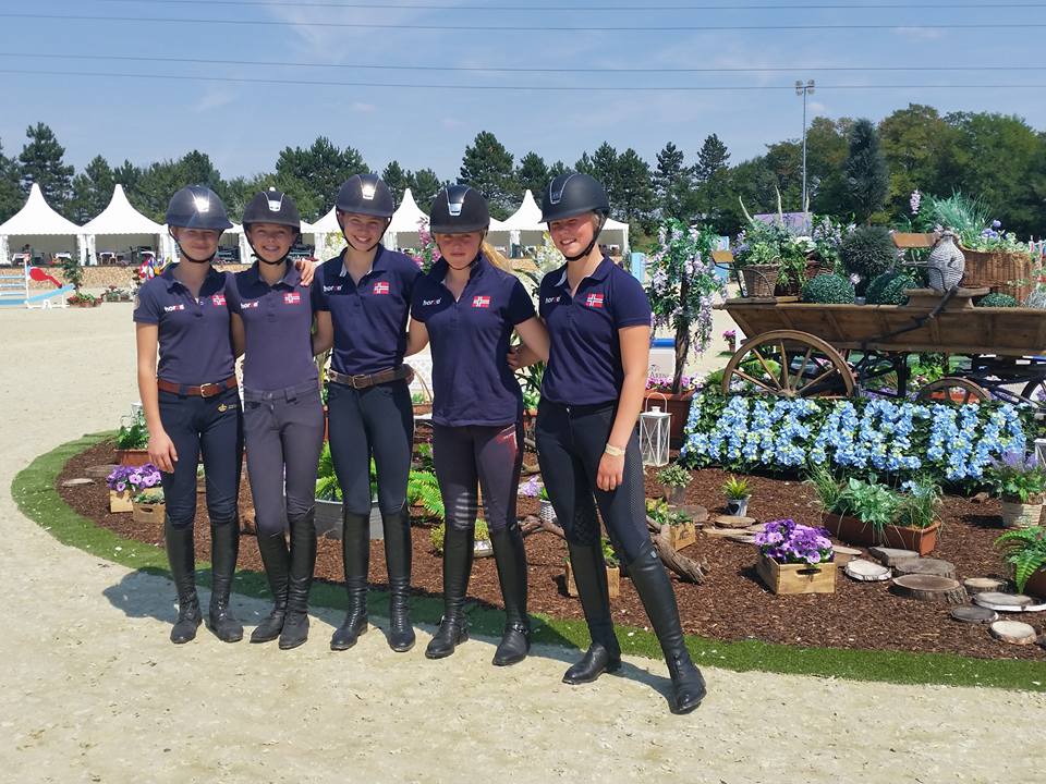 – Jentene red bra. Det var en rekk med bølgeplank som felte oss, samtlige rev denne, så det ble den triste 11. plass. Men, alle hestene hoppet bra, og jentene red bra, så alt i alt reiser vi herfra med en god følelse og vet hva som må gjøres enda bedre til neste år. Ada var 2 feilpoeng unna finale plass, men alle rir B-finale lørdag morgen, forteller lag- og landslagsleder for children, Trond Clemmetsen.