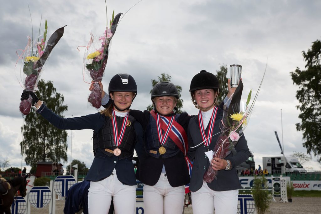 Sølvmedaljen tok Signe Skei på Berlin Star, som red feilfritt i alle rundene unntatt omhoppingen om gullet, der sluttresultatet ble 8 feil i omhoppingen. Bronsen gikk til Fanny Brøvig Marksten på Woodfield Rising Star, som fikk 4 feilpoeng totalt etter tre avdelinger.