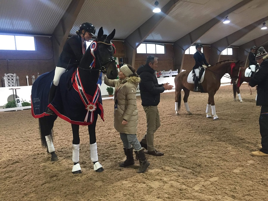 Trude Kasparek Hestengen hadde i år som i fjor tatt veien fra Danmark for å ri med i dette mesterskapet med sin DV-vallak Christianlunds Fürstino. I fjor ble det seier – og det gjentok rutinerte Trude på glitrende vis i år. De innledet med 82,4 %, og med 78 % andre dag ga det 160,4 totalt og en klar seier i klassen for ekvipasjen som representerte Spydeberg Rideklubb.