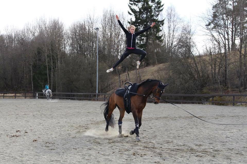 Kristine går litt tilbake til det tidspunktet hun begynte med voltige, januar 2015 og tenker på overgangen fra det hun trodde var voltige til det hun begynte med. Den overgangen var større enn hun hadde trodd. – Det tydeliggjør forskjellen på lek og seriøs idrett, konstaterer hun.