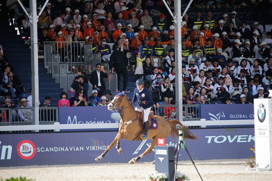 Bildetekst: Geir Gulliksen kan se tilbake på fantastiske opplevelser ved tredje etappe av Longines Global Champions Tour i Shanghai. Her som del av Scandinavian Vikings under lagkonkurransen med Seringat . Foto: Stefano Grosso/ GCL