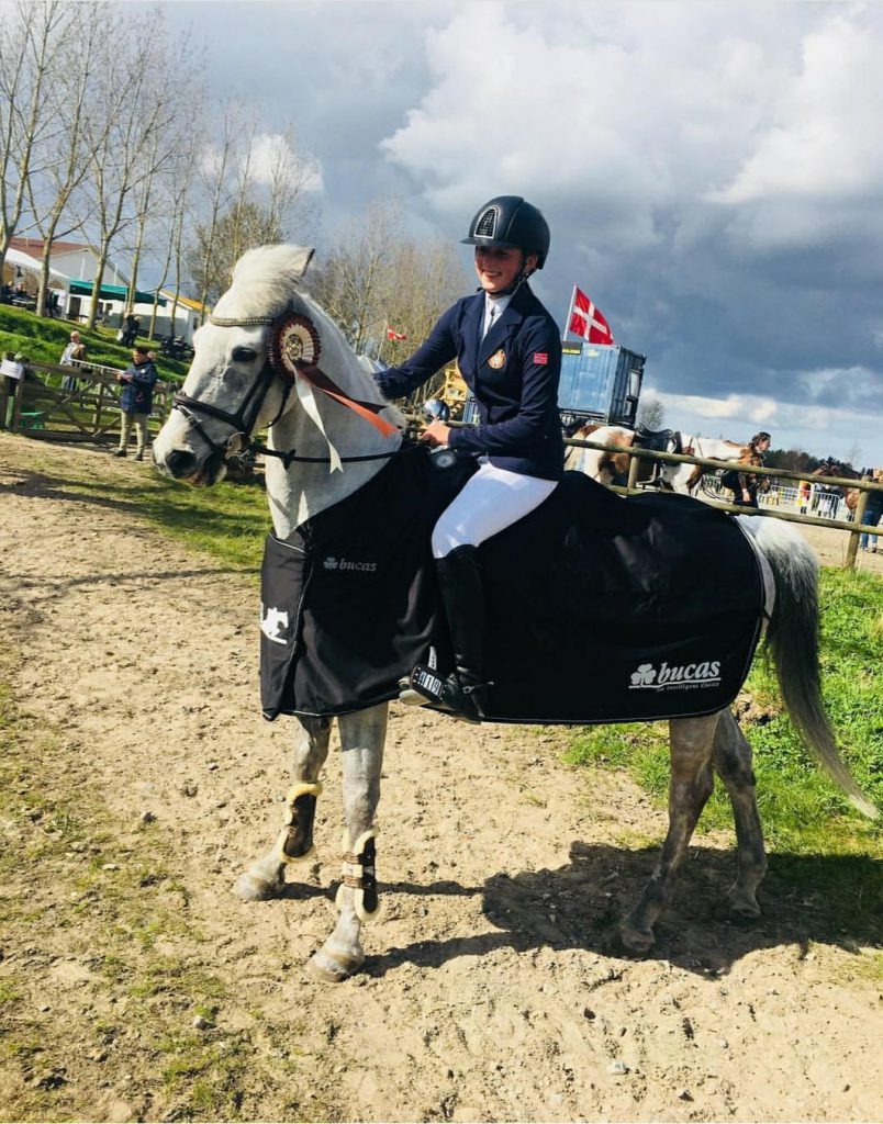 Madeleine gikk til topps i 1,10 m klassen for kategori II, en klasse med 20 startende. – Lucky var helt rå som vanlig og ga alt i omhoppingen i dag. Det var kjempegøy å vinne på en så fin utendørsbane – og kjekt å konkurrere med så mange ponniryttere, sier Madeleine.