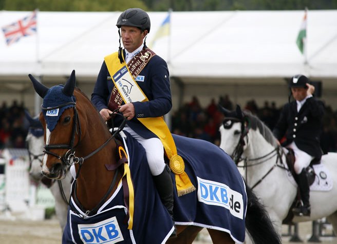 Søndag hadde Holger Wulschner en ny, strålende dag på jobben. Sammen med Fine Lady (e. Forsyth x Drosselklang II)gikk nemlig den populære tyskeren til topps i CSI4* Grand Prix. Runden inngår som første del av i alt seks DKB-Riders Tour 2014 stevner, der senere Hamburg, Wiesbaden, Münster, Paderborn og München venter. Med sine 20 poeng i dag har Wulschner fått en god start, men mange runder skal ris og hindre forseres, før siste målgang i DKB- Riders Tour skjer i november.