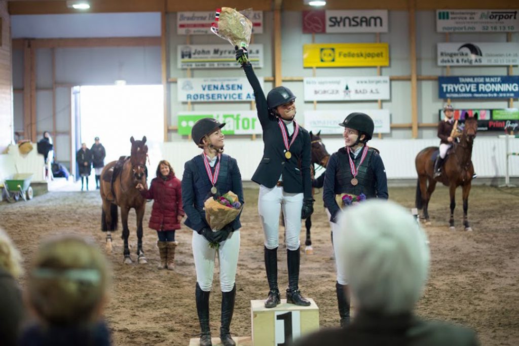 Etter to avdelinger i årets INM for junior, som ble arrangert av Hønefoss og Ringerike Rideklubb, var det tre ryttere som var feilfrie og klare for omhopping. Kun to fullførte mesterskapet uten feilpoeng. Cathrine Jerring og That’s Why fra Bærum var feilfri og raskest i omhoppingen, og vant med drøye to tideler av et sekund foran sølvvinner Vilde Wiik Terum og S.I.E.C. Casall fra Drammen. Anna Stangeland på Viraldo fra Sandnes og Jæren var feilfri helt til omhoppingen. Der ble det ti feilpoeng, men det holdt til bronse.