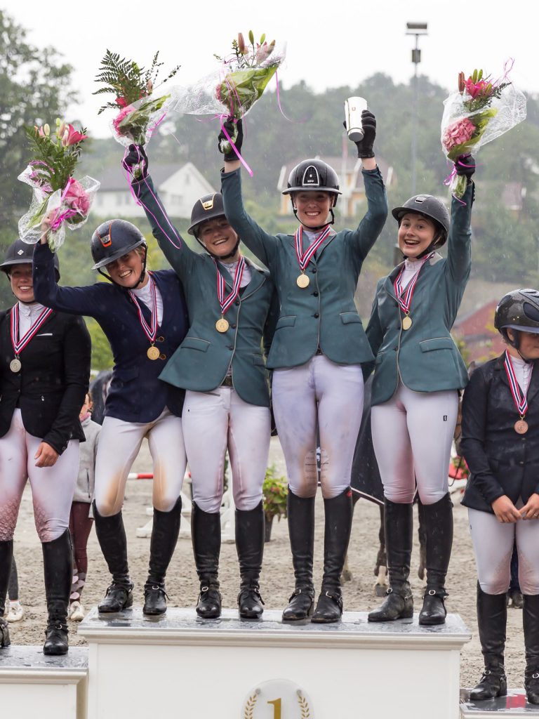 Bergen Rideklubb tok bronsemedaljen med Karoline Torsvik Nielsen, Vilde Neteland, Linda Hestad Valland og Fredrik Berg Seim på laget.