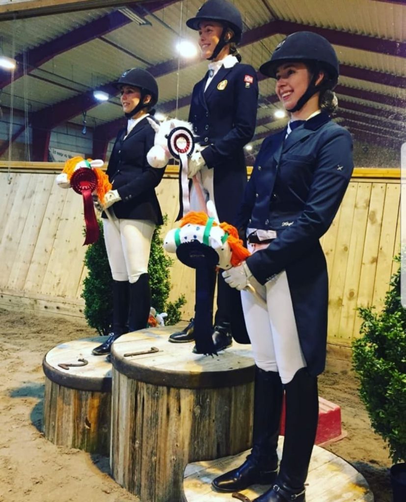 Bildetekst: Marie Hoff var en av flere som tok to seire på rad på Epona, her sammen med Tirill Ahlgren på andreplass og Maja Lykkje Seglén på tredjeplass i søndagens MA:1.