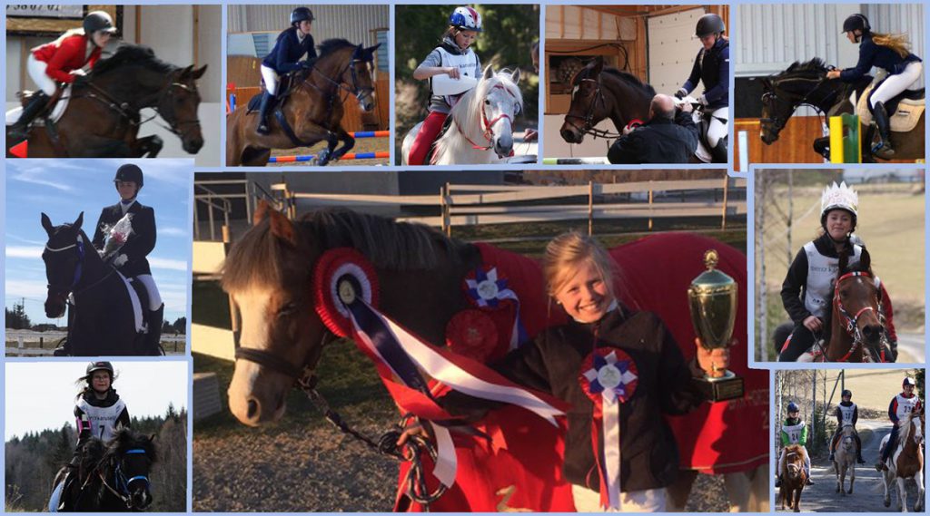 som startet var meget fornøyde. Rikke Aanstad Lium forsynte seg godt av premiebordet med en 3. plass i 0,90 m og 1. og 4. plass i 1,00 m.»