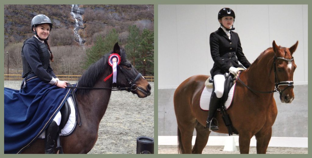 Bildetekst: Til venstre: Vilde Marie Koth Tøfte tok to seiere og to 2. plasser ved Sunndal Rideklubbs D-stevnet i sprang. (Foto: privat) Til høyre: Sunniva Jebsen Ulvesæther og Cantero gjorde sin første start noensinne og vant LC med 70 prosent ved Åsane Rideklubbs D-stevne i dressur. (Foto: M.Hillestad)