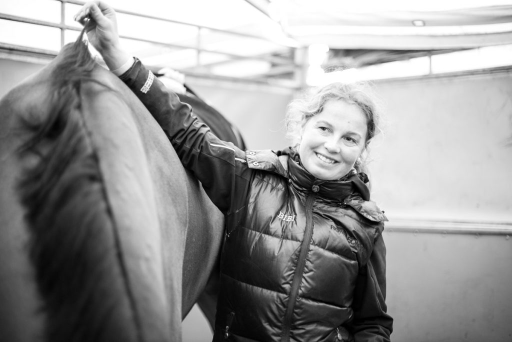 Det er Bibi, som sørger for veterinærsjekk, møkking, vasking og oppsaling i stallen hun er ansatt i. Hun har et bredt spekter med arbeidsoppgaver, og er alltid med hestene på reiser. I tillegg til hesten, hjelper hun også rytterne før og under stevner – og ofte mentalt.