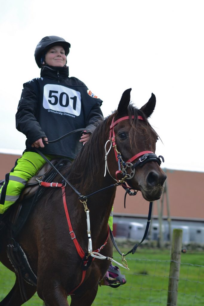 -Ja, det regnet hele tiden og blåste ganske mye, sier Ida. -Vi var tre til start i denne klassen, og de andre gikk ut ved fire mil, så jeg red de siste fire alene, det vil si en 3-4 timer. Jeg la faktisk ikke særlig merke til at jeg red alene, og jeg tenkte ikke at det var så langt. Jeg er kjent i området her, kanskje det er en grunn til det, forteller rytteren.