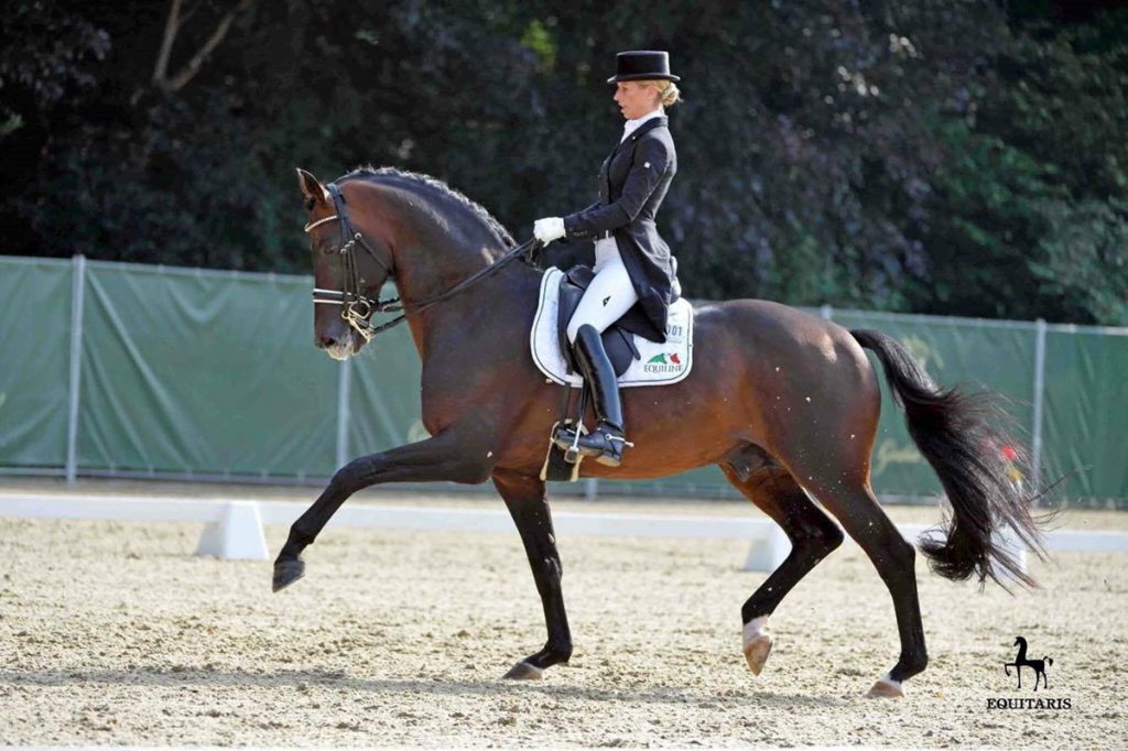 Isabel har ridd den populære hollandskfødte avlshingsten e. United/Gribaldi siden januar i år. Isabel overtok da tøylene etter Eva Møller, som nå er hos Andreas Helgstrand. Eva og Bordeaux, som for øvrig ble beste hingst under kåringen i Holland 2009, har blant annet tatt en fjerdeplass i unghest-VM i 6-årsklassen, de vant finalen i hingsteklassen i s’Hertogenbosch 2013 med god margin og i 2014 vant de flere internasjonale klasser opp til Prix St. Georges-nivå. I 2016 ble ekvipasjen høyt plassert i Louisdor-preis i Frankfurt i 2016.