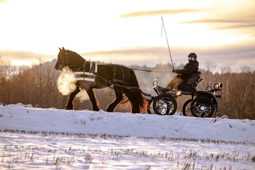 Å sitte i en vogn bak en hest er om mulig en enda kaldere treningsvariant enn å sitte oppå en hest de dagene termometeret glitrer blått.