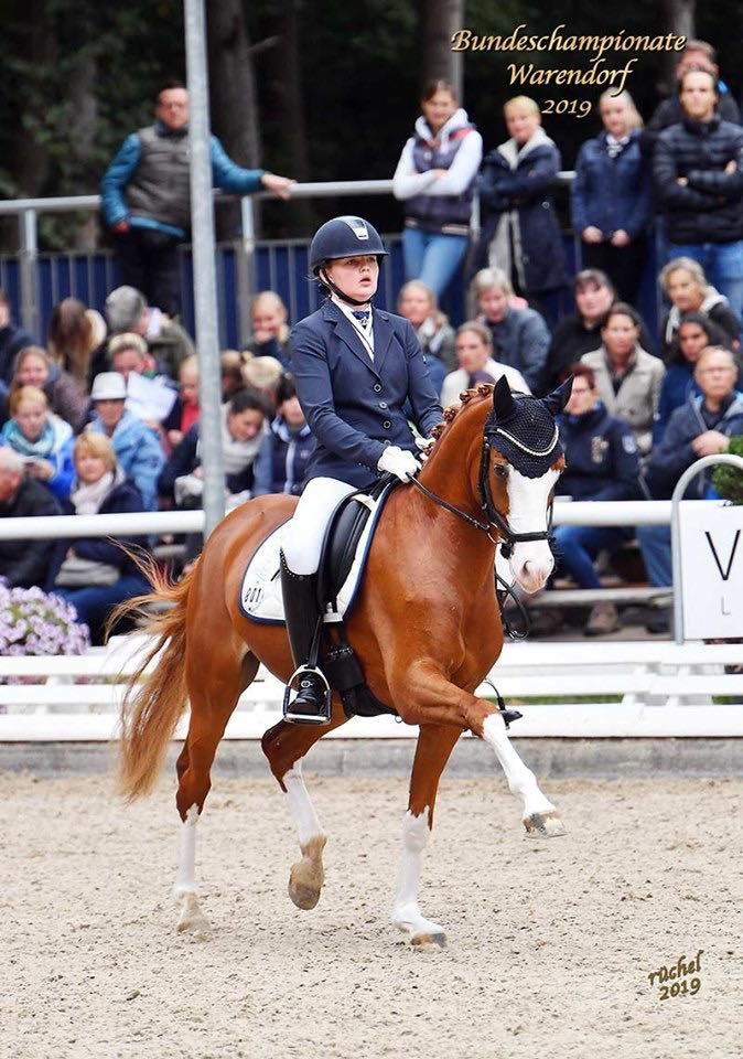 Det var under et stopp i Tyskland hos en venninne av Emmas mor da de var på vei til EM for children i sommer, at Emma fikk sette seg i salen på den unge ponnien – som på stallen går under navnet Wirsing. Det ledet til en start i et kvalifiseringsstevne i august, med knallgode poeng, seier og billett til Bundeschampionatet som følge.