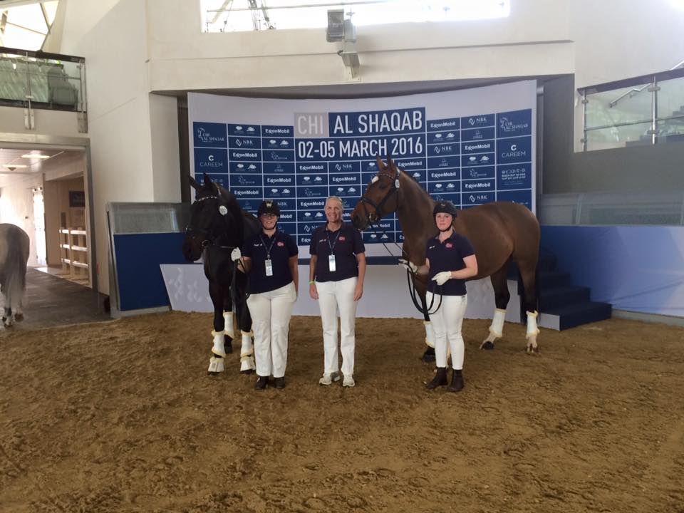 Norge representeres av Ann Cathrin Lübbe/Porsborggårdens Donatello e. Uno Don Diego/Urprinz og Jens Lasse Dokkan/Cypres e. Crelido/Resident i CPEDI3*. Paraklassene starter i morgen, og i dag har hestene passert vet-sjekken. Reisen for hestene begynte allerede natt til lørdag, med avgang fra danske Haderslev – begge disse rytterne holder til i Danmark. Turen gikk så på bil til Holland. Etter litt hvile i Holland gikk ferden videre til flyplassen i Liége, Belgia, der totalt 49 hester skulle fraktes videre til Qatar. Søndag kveld lettet flyet med hester og hestepassere, og etter en rolig flytur, kunne de spasere ut i varmen i Quatar natt til mandag.
