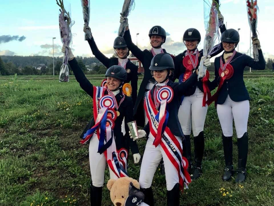 På gullaget i lagmesterskapet for hester var Helen Richvoldsen Aasvangen/President’s Cubald, Elise Hovlandsdal/Entre Cote, Thea, Katarina Bråten/Pia Pia og Linndis-Marie Nordvoll Olsen/Stall-K’s Rofino.