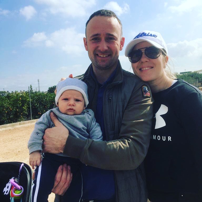 – Her er vi på plass og nyter det flotte været, forteller Marit fra Valencia. – Og også fine hester, legger hun til. – På plass er selvsagt også vår fantastiske baby som heter Marius, og vår fantastiske familie som bytter på med å hjelpe oss til å få til dette, smiler hun. – Forrige helg var min mamma her, og nå er søsteren til Karel her. Neste uke kommer svigermoren min fra Belgia og tar over, så vi er virkelig heldige, påpeker hun. – Jeg har med fire hester her, så med god hjelp fra familien går det fint, både å ri og å mate og være sammen med Marius.