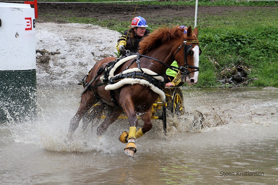 Wenche var spent ved stevnestart i Danmark. Hun – og flere kusker til – hadde kort tid før vært i Nederland, et stevne som ble preget av våte, tunge baner. Hennes fredriksborger hadde reagert ganske annerledes enn de fleste andre hestene på det. – De fleste hestene ble preget av at det var tungt, men med Saturn ble det omvendt – han ga full gass fra start, sier Wenche. – Dommerne likte riktignok veldig godt at det var mye energi i ham. Men han ødela alle holdtene, sto ikke stille i et eneste et.