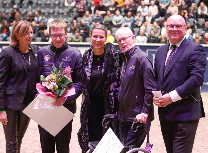 Det var prinsesse Märtha Louise som på vegne av StiftelsenVI og NRYF delte ut et stipend på 10 000 kroner hver til for videre satsning disse to topputøverne, sammen med president i NRYF, Tore Sannum og sportssjef Nina Johnsen. Jens Lasse Dokkan, vår ringrev i paradressur, tok tre strake seire under EM i Rotterdam i sommer, hvilket ga to glitrende gode gullmedaljer. Kristoffer Hadland Paulsen representerte Norge i Special Olympics i Abu Dhabi i mars, sammen med Frida Gjellum Winther. Det var første gang det var norske utøvere med i ridning i dette mesterskapet, og Kristoffer gikk like godt hen og tok et sølv og et gull.