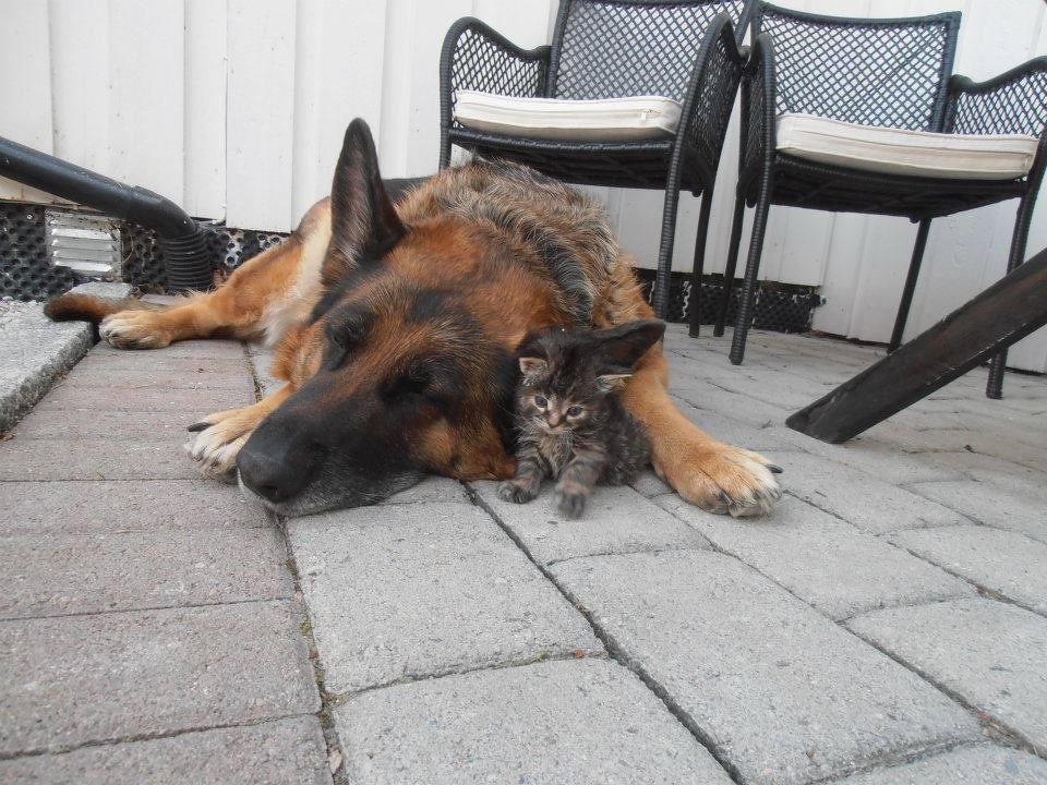 – Til tross for sine 55 kilo og tøffe utseende er Mira den mest omsorgsfulle hunden jeg kjenner. Når vi har hentet nye kattunger som har blitt forlatt av eierne sine går hun i transe med en gang og blir til kattemor. Ofte tar hun seg av alt stell, vasker småtrollene bak og begynner til og med å produsere melk, noe som har reddet livet til flere kattunger sier matmor Hilde.