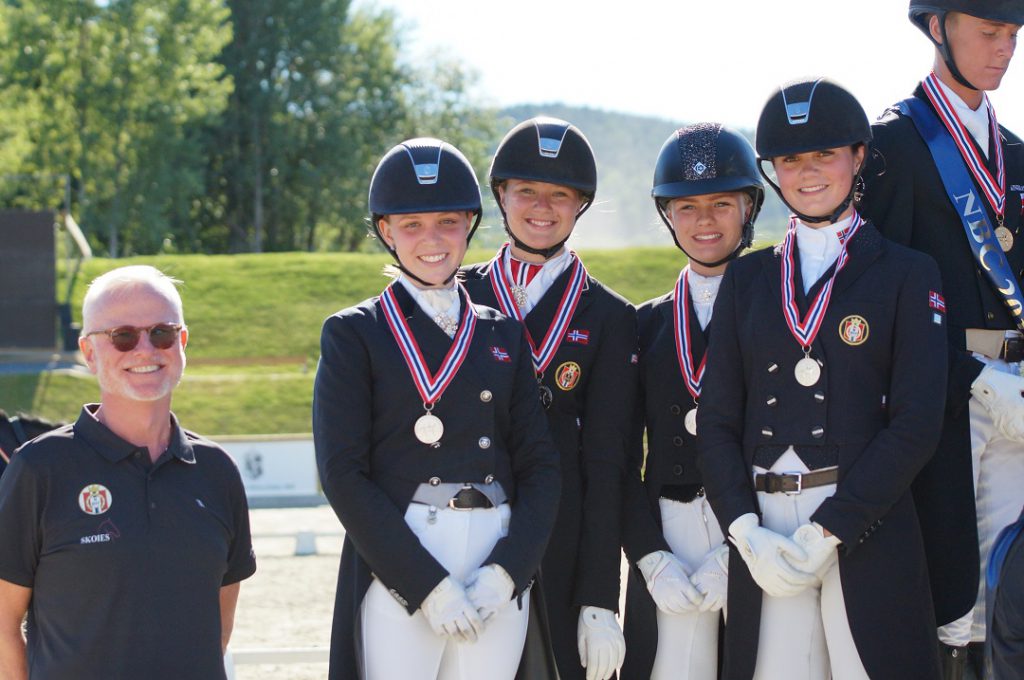 Det norske juniorlaget i dressurridning stod for lørdagens medaljefangst under nordisk mesterskap i ridning for aldersbestemte klasser på Linnesvollen i Lier. Bare danskene var bedre enn den norske kvartetten.
