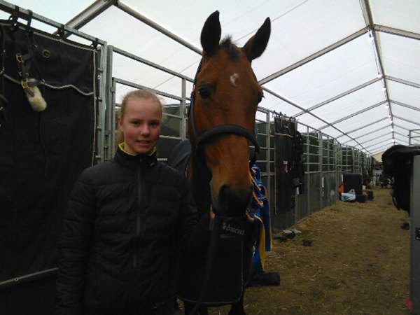 – Trenerne mine, Kenneth Sande og Eurico Mariante, liker best at jeg rir hest, og jeg har Nordisk Baltisk Mesterskap for Children med Amour som hovedmål for sesongen. Likevel synes jeg selv fortsatt det er morsomst å ri ponni, for det går liksom mer av seg selv. Ponnien min, Brooklands Flash Dance, hun bare hopper, hun, men på Amour må jeg ri ordentlig for å få det til.
