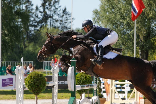 16 år gamle Mira har tatt ledelsen i klassen for unge ryttere sammen med sin NV-hoppe Shelby. Ni ekvipasjer har innledet sitt innendørs mesterskap med nullrunde i 1,35 m klassen, men best tid var det Mira fra Fredrikstad og Omegn Rideklubb som stod for. Klokketavlen viste 71,19 s ved målpassering, det ble seier med minste mulige margin – Mathilde Kristine Kalland/Estolga (GRSK) galopperte i mål på tiden 71,20 s. Drøye fire sekunder bak ligger tredjeplasserte Amalie Marki Drivenes/Elmegårdens Artos e , med regjerende utendørsmester i klassen, Martine Eknes Hegna/Zoroya (DOR) hakk i hæl.