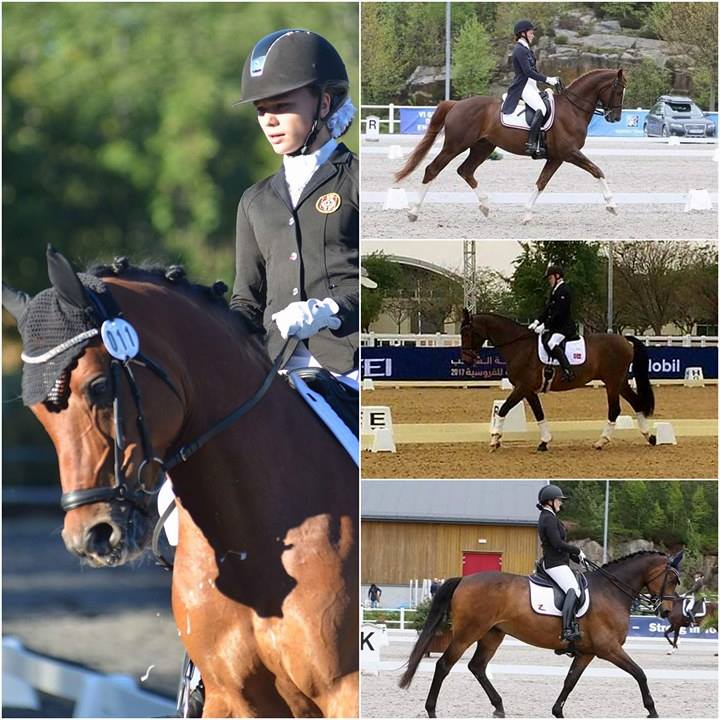 Stine Olsen Lund/ Ravell’s Hexia tok seg av seieren i juniorenes gjennom 68,132 prosentpoeng, mens Alexandra Gamlemshaug Andresen/ Empire B igjen imponerte det internasjonale dommerpanelet gjennom 71,184 prosentpoeng og seier nummer to i ungrytterklassen denne helgen. Alexandra red for øvrig også sin Belamour inn til en ny, sterk plassering – denne gangen som nummer to i lørdagens Intermediaire I til gode 70,711 prosent.