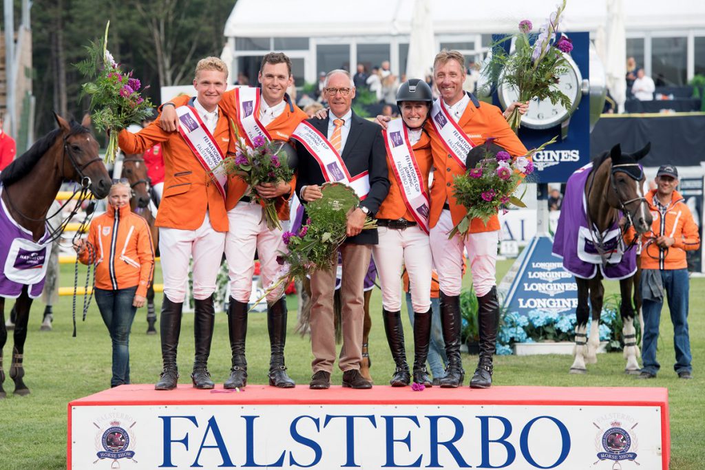 Sist ut for Nederland var så norgesvennen Jur Vrieling/ Vdl Glasgow Merelsnes, og i denne viktige omhoppingsrunden skulle den erfarne lagrytteren vise seg fra sitt aller, aller beste. Frem til dagens Nations Cup-runde på Falsterbo lå Nederland nemlig helt nederst på statistikken, men vips, så ble 100 poeng og seier sikret. Vrieling valgte som Lynch å gå på innsiden til kombinasjonen, men holdt alle bommer oppe. Etter uslåelige 46,35 kunne derfor Chef d’Equipe Rob Ehrens entre toppen av pallen flankert av sine fire jublende lagryttere.