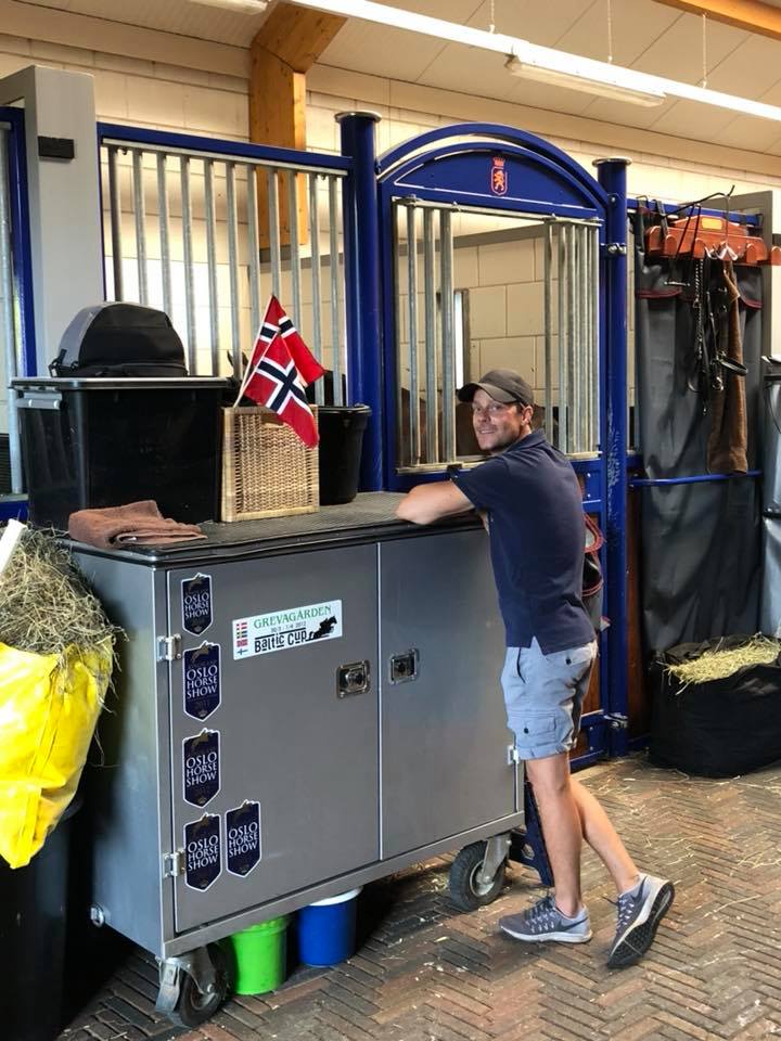 – Vi – det vil si hesten og jeg selv, familien Grønvold Johannessen som eier Santos, og resten av teamet vårt i Triumph Drerssage – er vel fremme i Ermelo etter en lang reise, forteller Jonas Elvebakk fra stevneplassen. – Nå er vi godt installert og gleder oss til showet er i gang. Vi har kun skrittet rundt på området i dag og har to dager til med trening før det braker løs for vår del på fredag. Arenaen er fantastisk flott, og alt ligger til rette for en flott uke med unghester i verdensklasse, avslutter han begeistret.