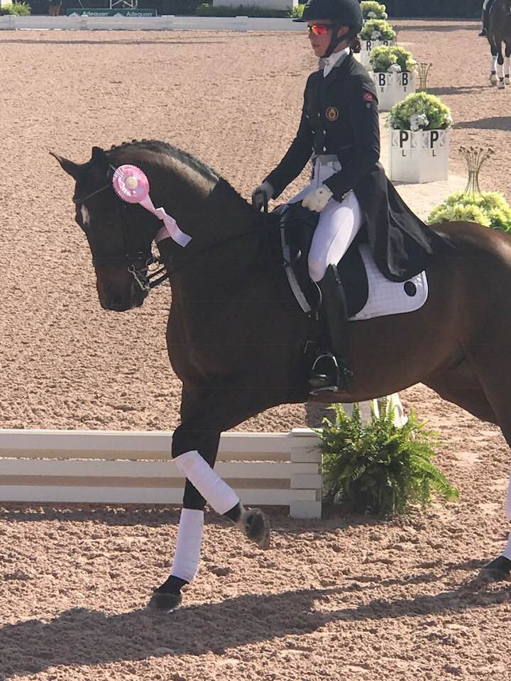 Vi nærmer oss avslutningen på uke 5 av pågående Adequan Global Dressage Festival i Wellington, Florida. Der fortsetter Alexandra Gamlemshaug Andresen å høste plasseringer med begge sine hester til start denne uken. I gårsdagens CDI3*Intermediaire I likte åpenbart igjen det internasjonale dommerpanelet hva de så. Med en totalscore på 67,176 prosentpoeng ble den norske ungrytteren og IPS Don Massimo (Don Larino x Little Star) nemlig på ny nummer fem i det tøffe startfeltet. Senere denne søndagen skal ekvipasjen vise küprogrammet sitt fremfor det kyndige dommerpanelet der flere blant dem for øvrig også blir igjen å se under WEG (World Equestrian Games) i North Carolina i september. Det norske håpet vårt rir sist ut.