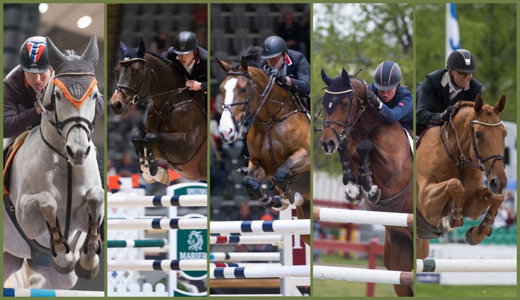 Bildetekst: Stein Endresen, Ole Kristoffer Meland, Morten Djupvik, Victoria Gulliksen og Christian A. Øien er tatt ut til nasjonshoppingen under Drammen Sprin Tour. (Alle foto: hesteguiden.com)