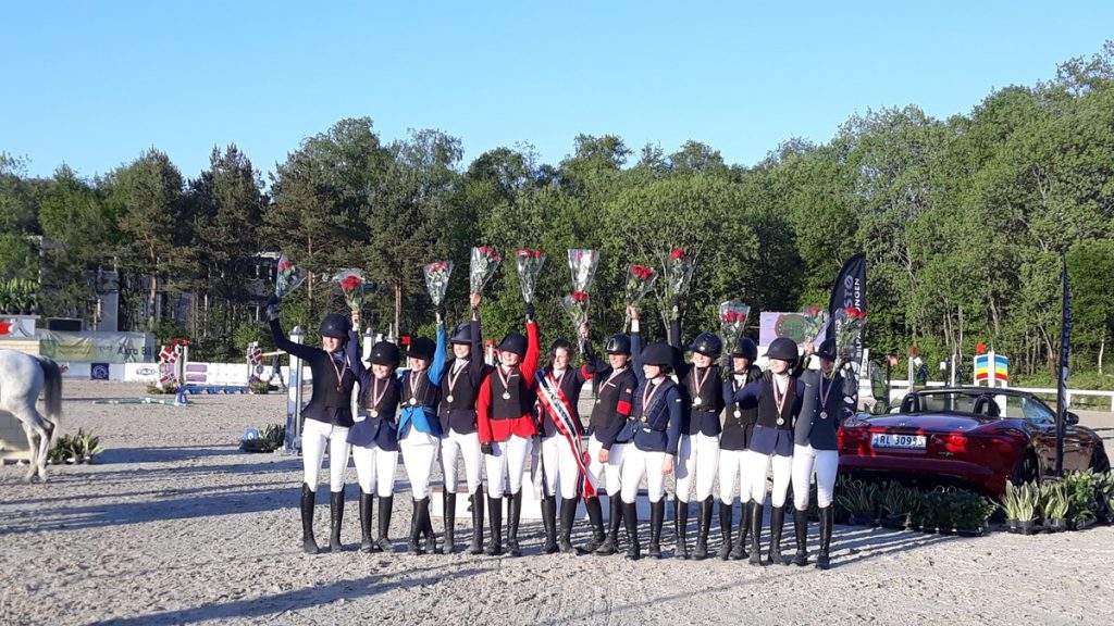 Gulljentene måtte nemlig ut i omhopping om gullet – mot Drammen og Omegns Rideklubbs lag ved Embla Aske Jacobsen/ Red News, Julie Askim Petersen/ Maia Stengaard, Sofie Rieber-Mohn Borgen/ Milchem Shes A Keeper og Martine Mariero Moe/ Aisling’s Boy under lagleder Martin Aske Jacobsen som gjorde en strålende innsats og kapret sølvet.