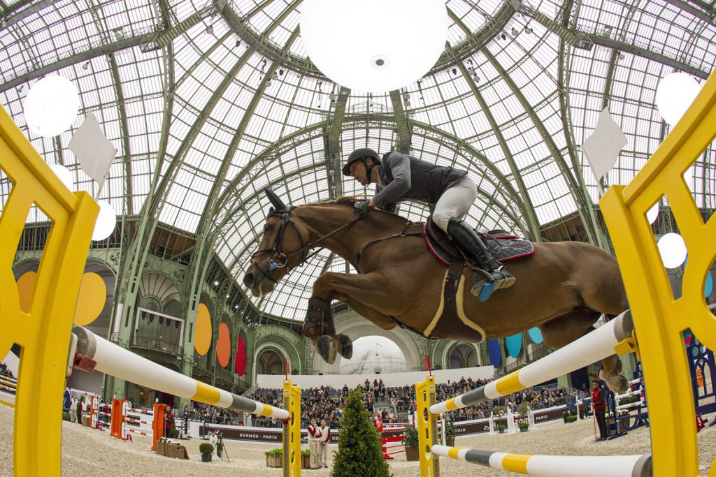 Bildetekst: Kevin Staut har ridd inn til seier på hjemmebane, i Paris Grand Palais. (Foto: Frédéric Chéhu/Hermès)