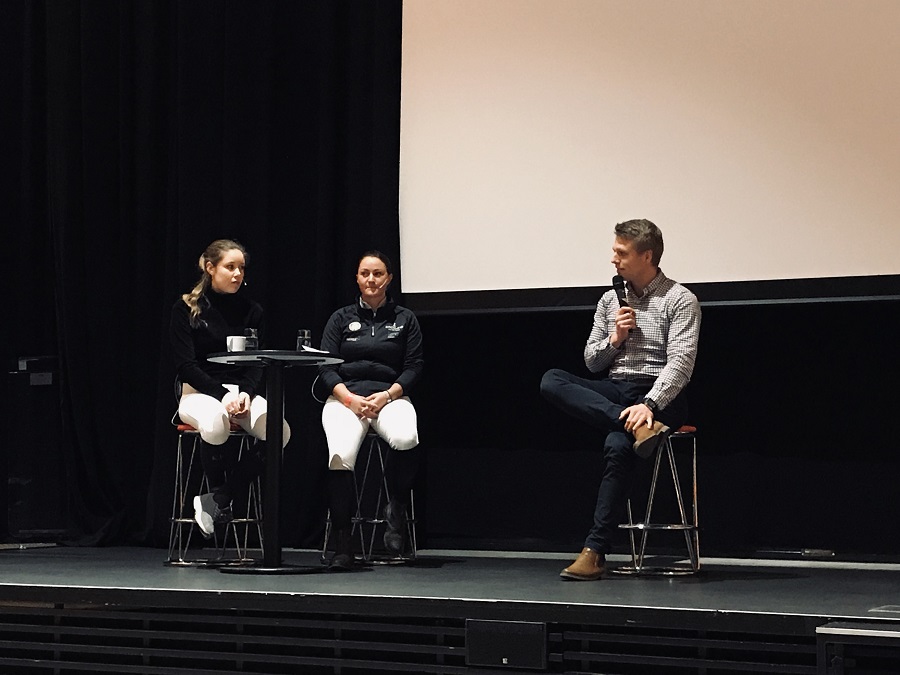 Selve samlingen med NRYF handlet om «Våre veivalg». Marius Dammyrs presentasjon ble innledet med et intervju med Victoria Gulliksen fra landslaget i sprang og Ellen Birgitte Farbrot fra landslaget i dressur. Etterhvert fikk vi i publikum også spørre rytterne om ting vi lurte på. Det viktigste spørsmålet som kom opp her vil jeg si var «Har du tatt et valg du angrer på, eller som fikk konsekvenser for deg, og på hvilken måte?» På dette svarer Farbrot at hun hadde en riktig god hest som hun kunne selge for veldig mye penger etter et mesterskap, men valgte å ikke gjøre det. Hadde hun solgt hesten sin ville hun fortsatt hatt unghestene sine som var «up and coming» og hun ville også hatt en helt annen økonomi, noe som har mye å si for de som satser, vi vet jo alle at denne sporten koster. EB, som hun blir kalt til daglig, har nok helt rett her. I musikken er det en frase som sier «kill your darlings», og det er kanskje noe av det samme i hestesporten? Tenker du over hvilke valg du gjør, både store og små?