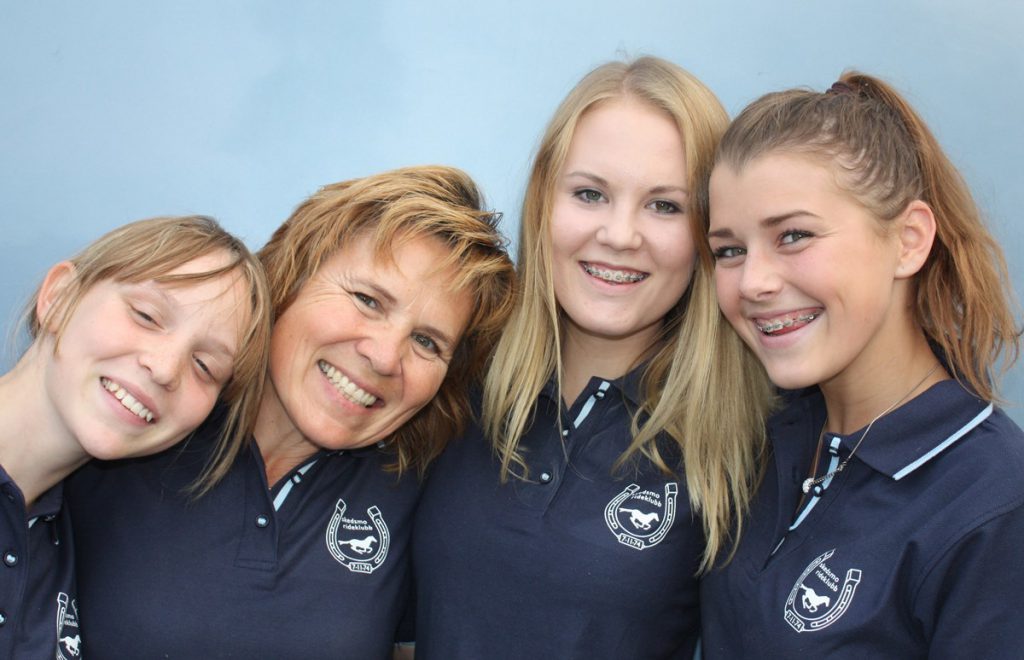 Bildetekst: Skedsmos ponniryttere tok laggull i fjorårets NM, kanskje gjør de det i år også? Fra venstre: Mathilde Merethe Klaesson, lagleder Merethe Blikstad, Nora Ekrem og Amy Hammer. Foto: Elizabeth Farbrot